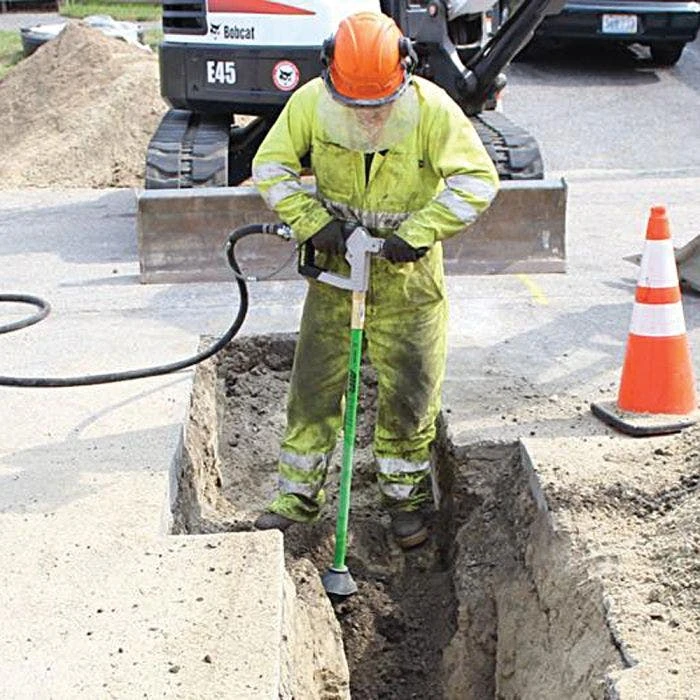 The new standard for air excavation tools! GuardAir’s Utility AirSpade 4000 Series harnesses the power of compressed air. Use this tool to safely uncover underground utility lines. The 4000 Series features the patented AirSpade supersonic nozzle. This high-performance nozzle generates a laser-like jet that moves at twice the speed of sound. This movement allows for faster, more effective digging.