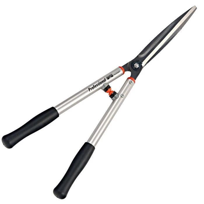 The Bahco Pro Super Light Slim Blade Hedge Shears have cushion bumpers to cushion the shock of constant opening and closing of the handles and black vinyl grips that are contoured for added comfort.