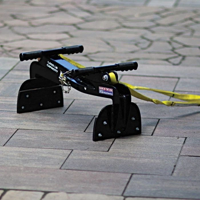 CMP Attachments and Rock Hard Landscaping make these lift-driven welded clamps in 3 adjustable sizes. They easily attach to your excavator or skid loader via a clevis. The clamping surfaces feature rubber pads. These pads provide additional grip and protect the material underneath. Each lift also includes a heavy-duty attachment strap. For replacement straps, click HERE. CMP Attachments and Rock Hard Landscaping both call Minnesota home. They manufacture and assemble these step lifts in the USA. They engineer each product with unparalleled quality and design. CMP Attachments and Rock Hard Landscaping designed these lifts to handle all your step placement needs. See below for buying options.