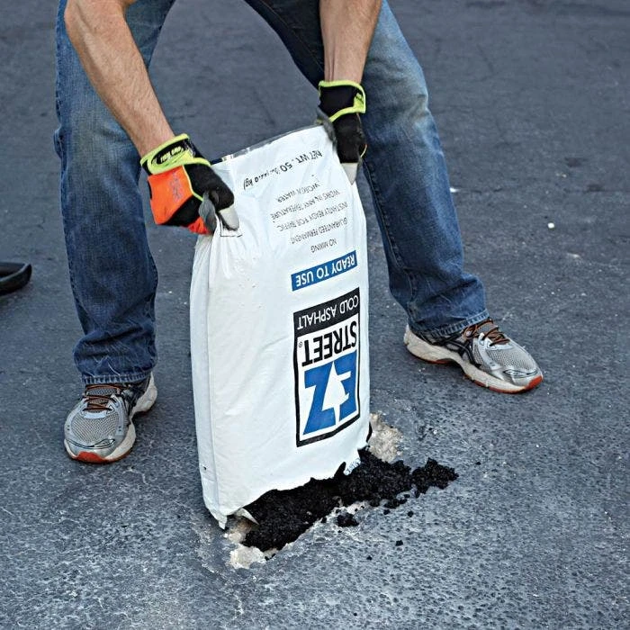 EZ Street specially engineered their Cold Asphalt Patch to fix potholes permanently. This polymer-modified, high-performance material also repairs utility cuts, overlays, and edge work. It works on either asphalt or concrete surfaces. EZ Street Cold Asphalt works right out of the bag. It works in all weather conditions, including cold and rainy days.