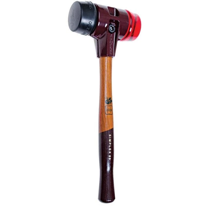 Simplex 3.5-pound paver mallet with 60mm replaceable faces. Comes with hard red plastic and black rubber inserts and a hickory handle. All held together by a cast steel housing. With a long list of uses, Halders simplex mallets have become a hardscaping must.
